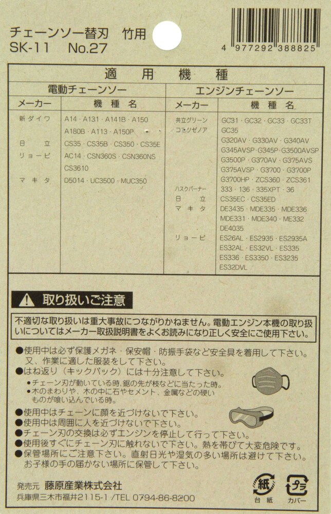 SK11 電動ソー・エンジンソー用 オレゴン製チェンソー替刃 No.27 91F-52E 竹用 (1本)