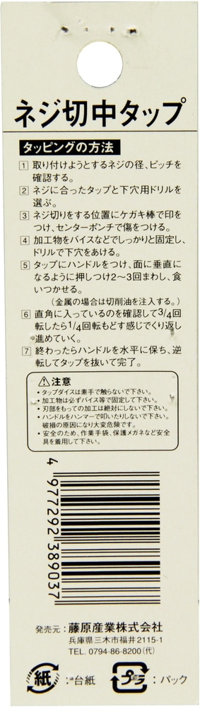 | 材質:SKS2(タングステン鋼) タップサイズ:M6*1.0 下穴サイズ:5.0mm |
