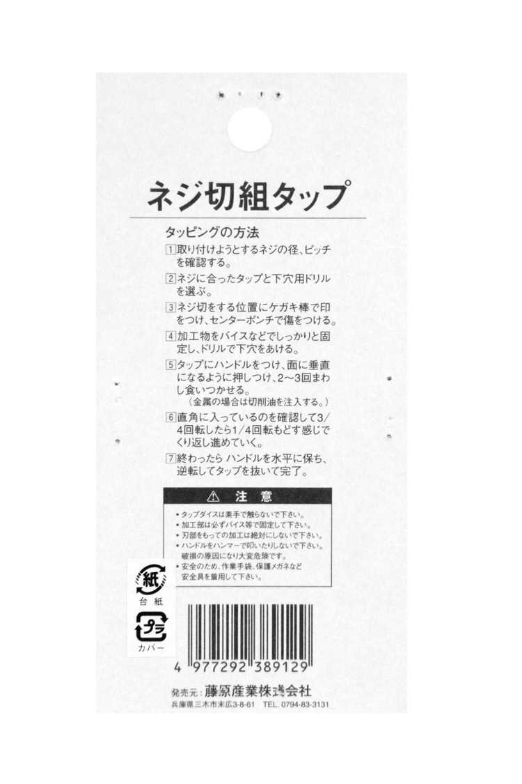 | ・タップサイズ:M10×1.5 ・下穴サイズ:8.5mm ・材質:SKS2(タングステン鋼)。 |