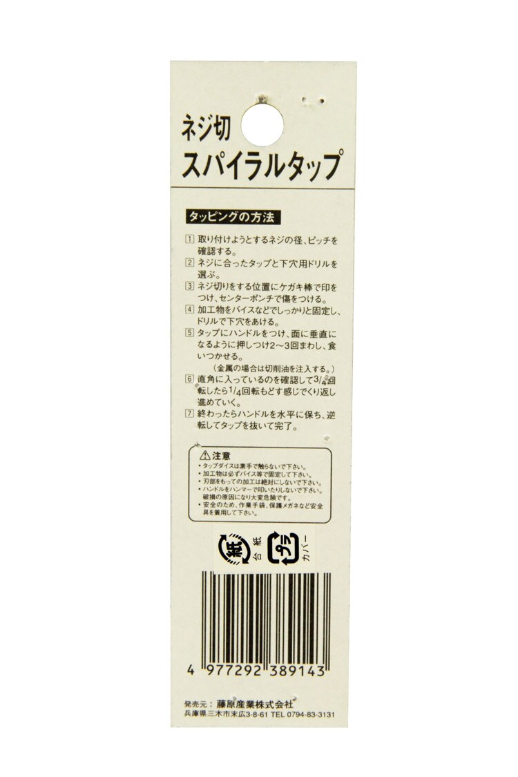 | ・タップサイズ:M3×0.5 ・下穴サイズ:2.5mm ・材質:SKH(ハイス鋼)。 |