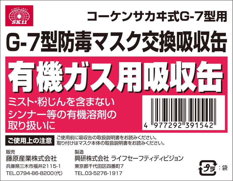 SK11 コーケンサカヰ式G-7型用 有機ガス用吸収缶 (1個)
