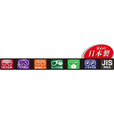 ●紫外線カット・くもり止めレンズでクリアな視界を確保します。