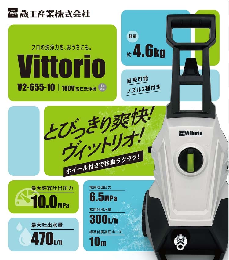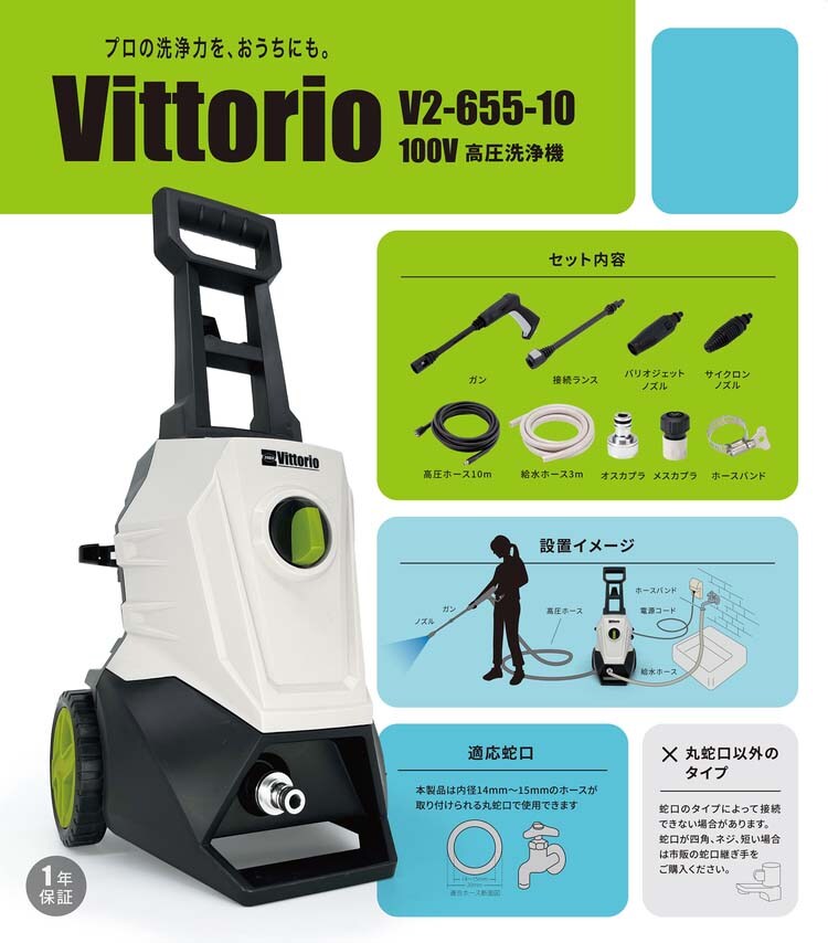 【Vittorio(ヴィットリオ) 高圧洗浄機 最大許容圧力10.0MP V2-655-10の商品詳細】