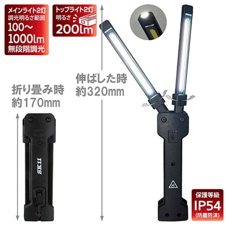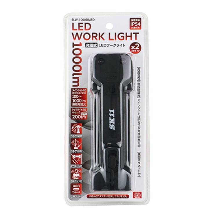 SK11 充電式LEDワークライト 角度自在 メイン100~1000Lm トップ200Lm SLW-1000DMFD (1個)