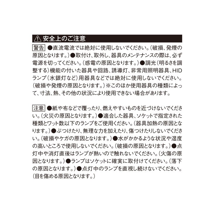 ・LED素子にはばらつきがあるため、同じ型式の商品でも、光色・明るさが異なる場合があります。