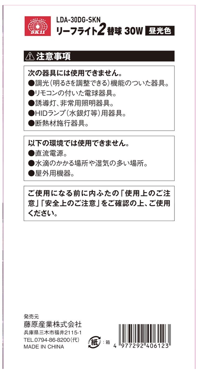 【SK11 リーフライト替球 30W LDA-30DG-SKNの商品詳細】