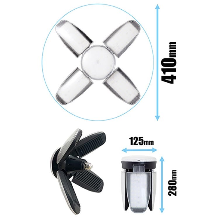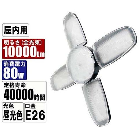 | ・消費電力:80W ・全光束:10000lm ・LED電球定格寿命:40000時間 ・光色:昼光色 ・口金:E26 |