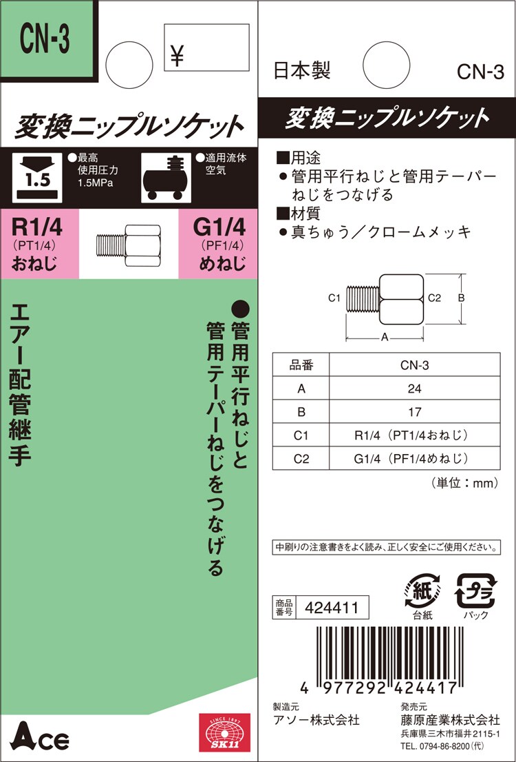 【SK11 変換ニップルソケット CN-3 R1/4 G1/4 エアー配管継ぎ手の商品詳細】