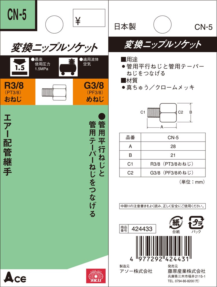 【SK11 変換ニップルソケット 3MX3FF CN-5の商品詳細】