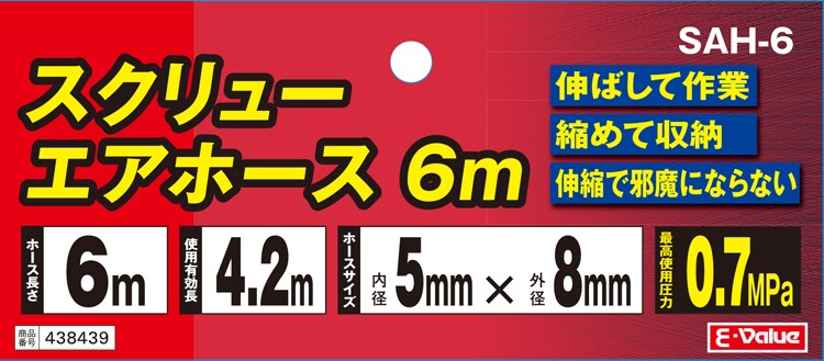E-Value スクリューエアーホース 6m SAH-6 (1本)