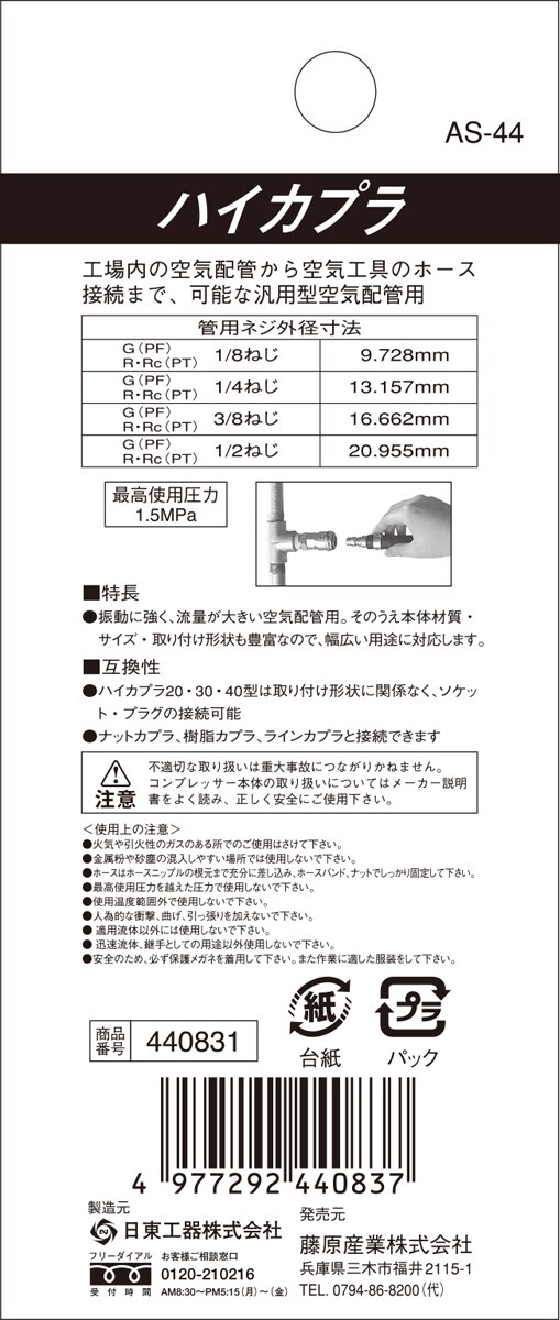【SK11 ハイカプラ(ソケット) ホース取り付け用 40SH AS-44の商品詳細】