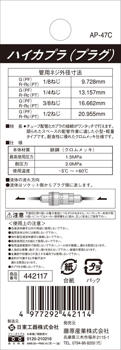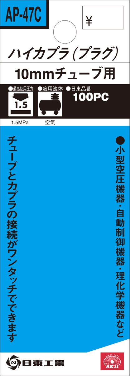 SK11 ハイカプラ(プラグ) 100PC AP-47C 10mmチューブ用 (1個)