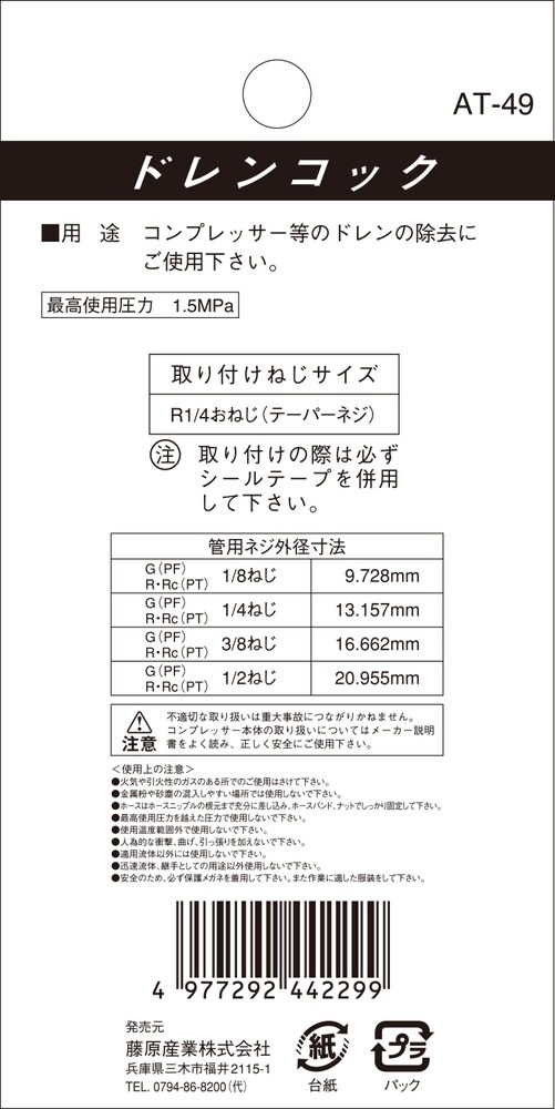SK11 ドレンコック AT-49 R1/4 (1個)