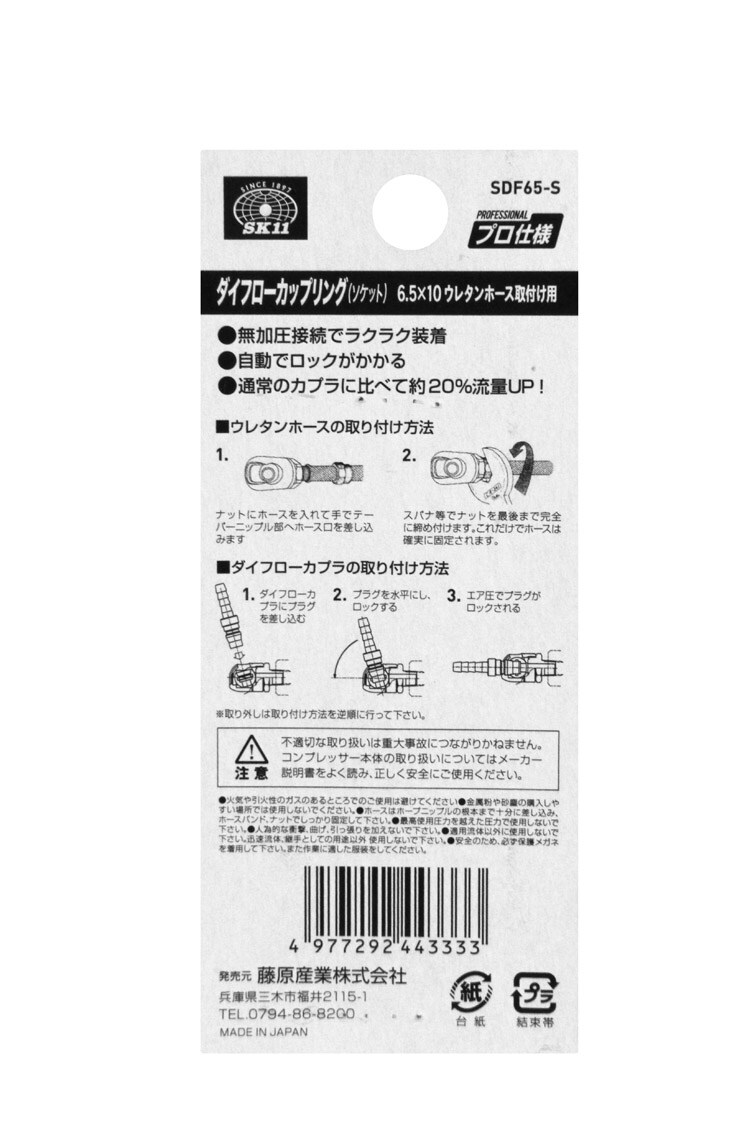 【SK11 ダイフローカップリング ソケット 6.5 SDF65-Sの商品詳細】