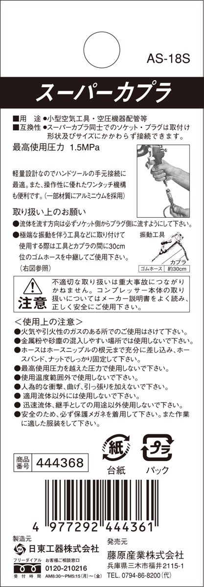 【SK11 スーパーカプラ(ソケット) 1/4ホース取り付け用 02SH AS-18S 444368 02SHの商品詳細】