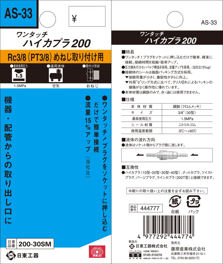 【SK11 ワンタッチ ハイカプラ 200-30SM AS-33の商品詳細】