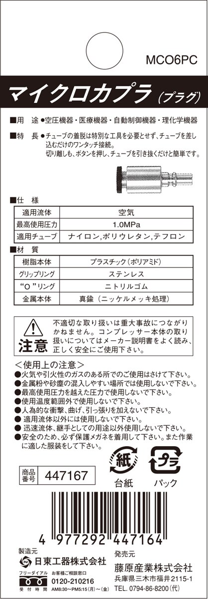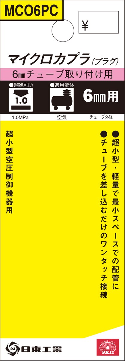 SK11 マイクロカプラ(プラグ) 6mmチューブ取り付け用 MC-06PC 447167 (1個)