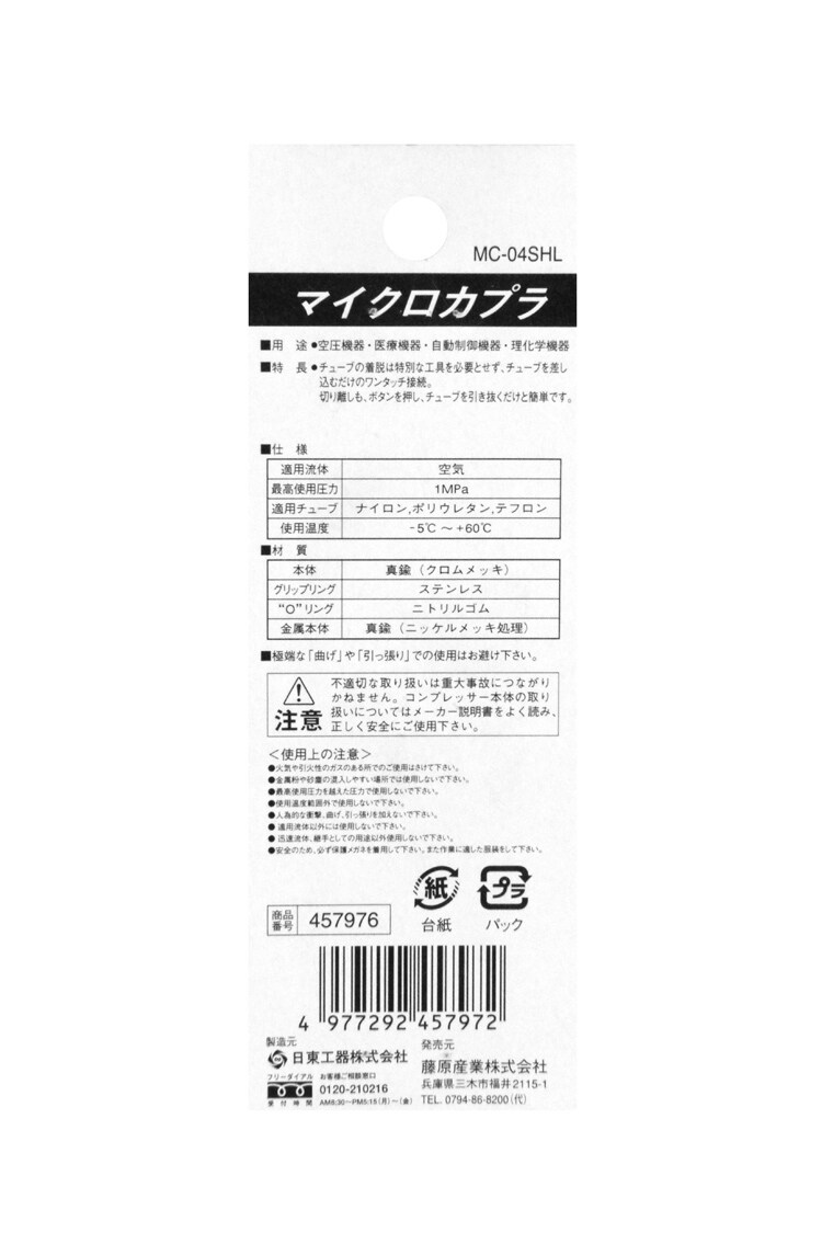 【SK11 マイクロカプラ 内径4mmチューブ用 MC-04SHL 457976の商品詳細】