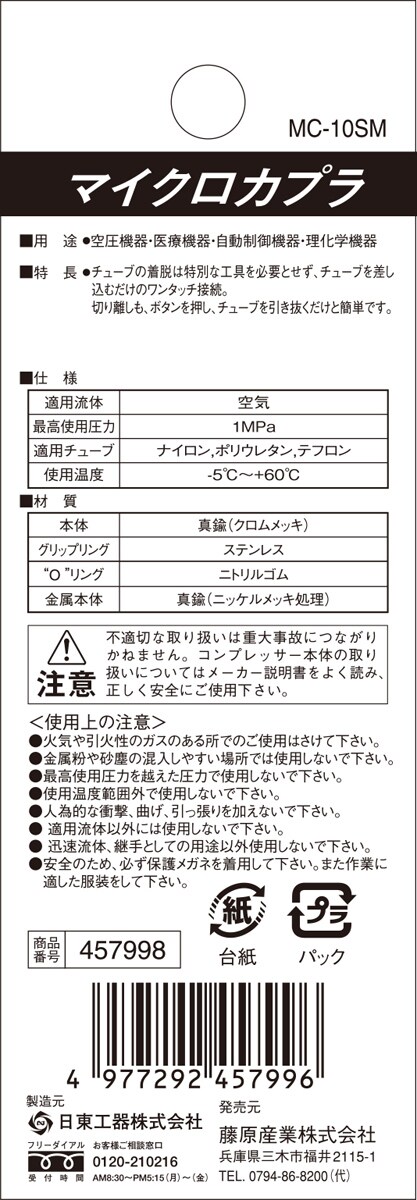【SK11 マイクロカプラ PT1/8メネジ取り付け用 MC-10SM 457998の商品詳細】