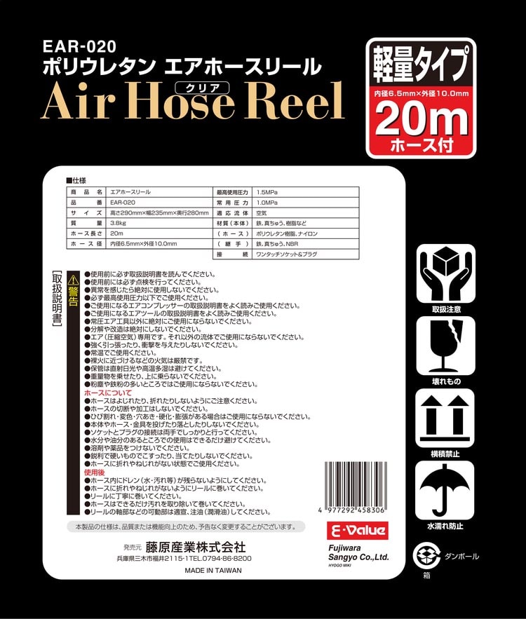 【藤原産業 E-Value ポリウレタン エアホースリール 軽量タイプ 20mホース付 EAR-020の商品詳細】