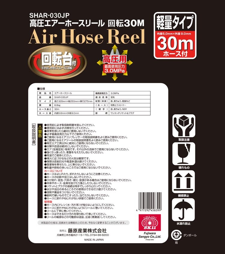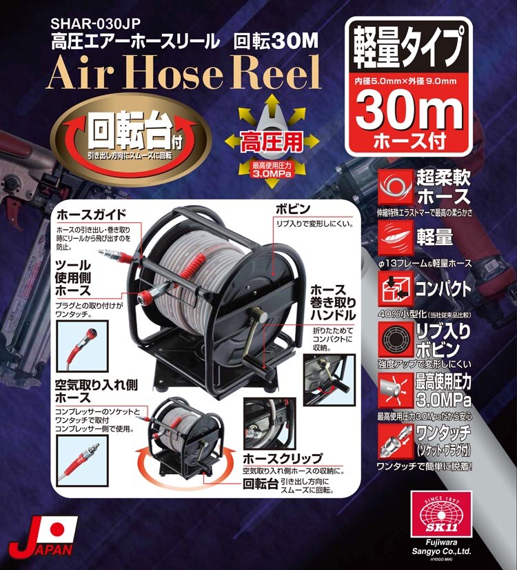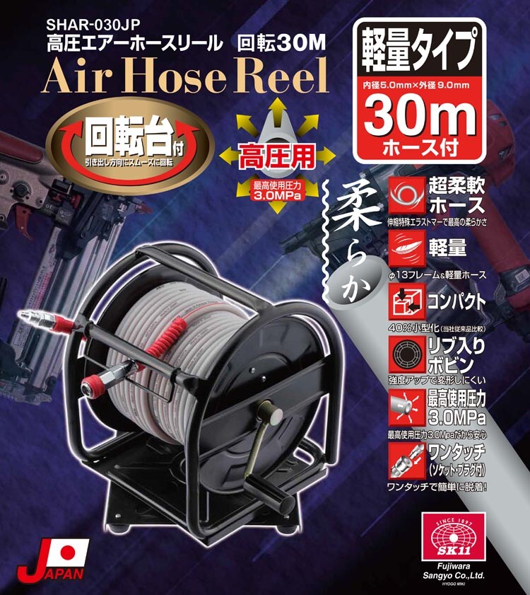 【藤原産業 SK11 高圧エアホースリール 30m SHAR-030JPの商品詳細】