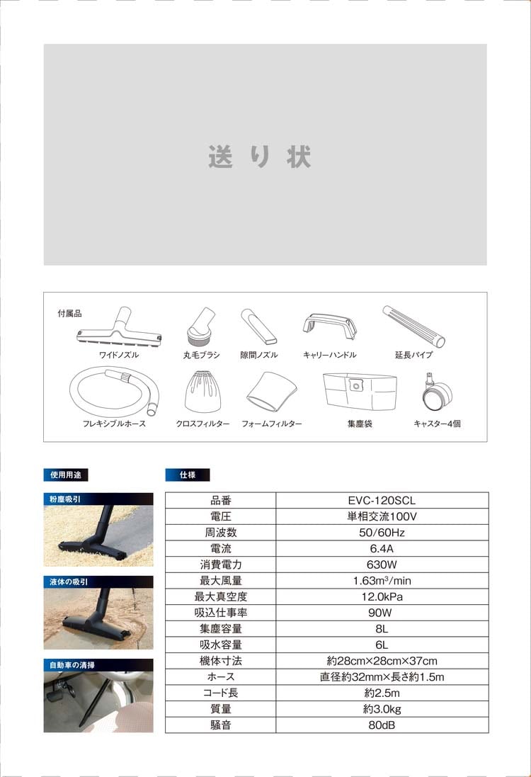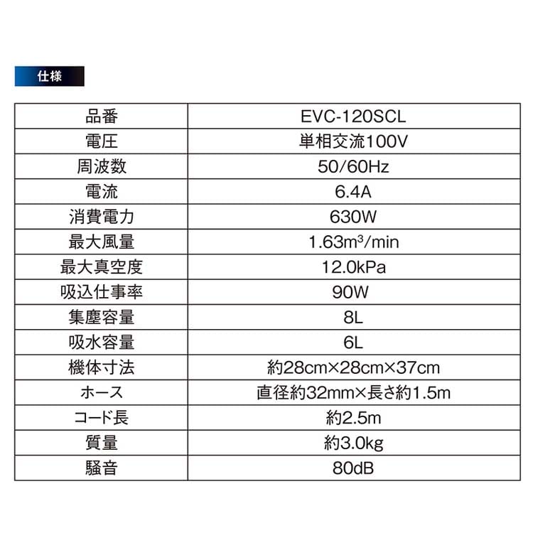 【E-Value 乾湿両用掃除機・ブロワー機能付 ステンレスタンク 12L EVC-120SCLの商品詳細】