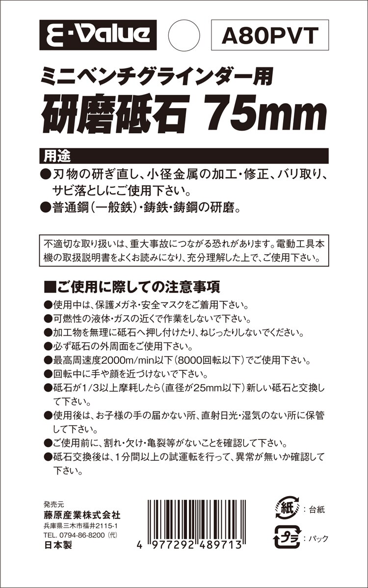 【E-Value 研磨砥石 75mm ミニベンチグラインダー用 A80PVTの商品詳細】