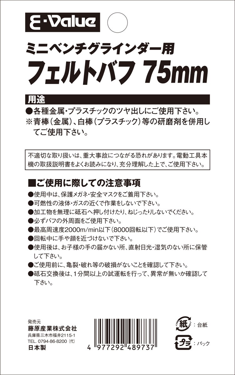 【E-Value フェルトバフ75mm EBG75用の商品詳細】