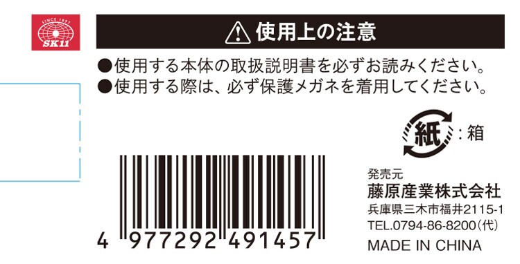 ・使用する機械の取扱説明書を必ずお読みください。使用する際は、必ず保護メガネを着用してください。