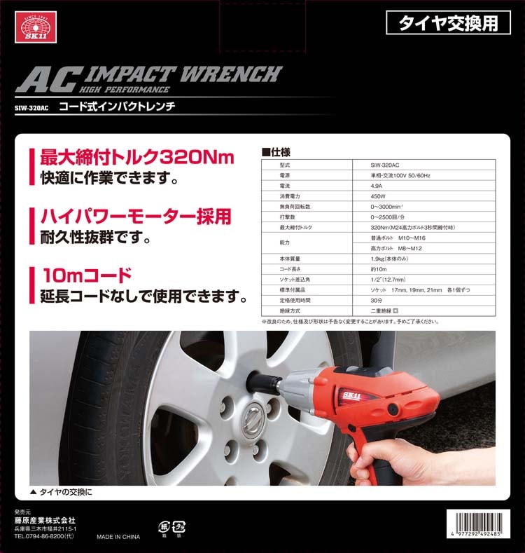 SK11 コード式インパクトレンチ(電動インパクトレンチ) SIW-320AC (1台)