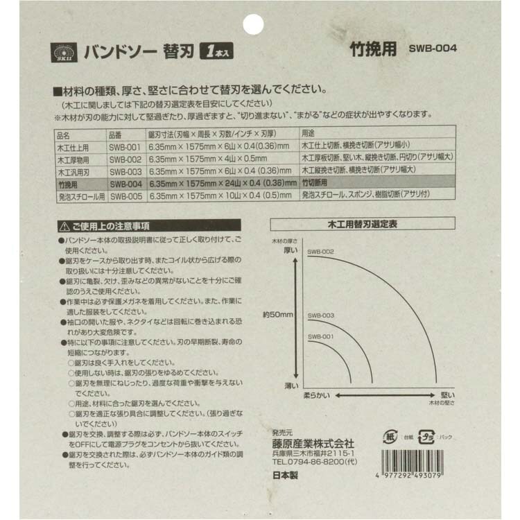 SK11 バンドソー替刃 竹挽用 SWB-004 (1個)