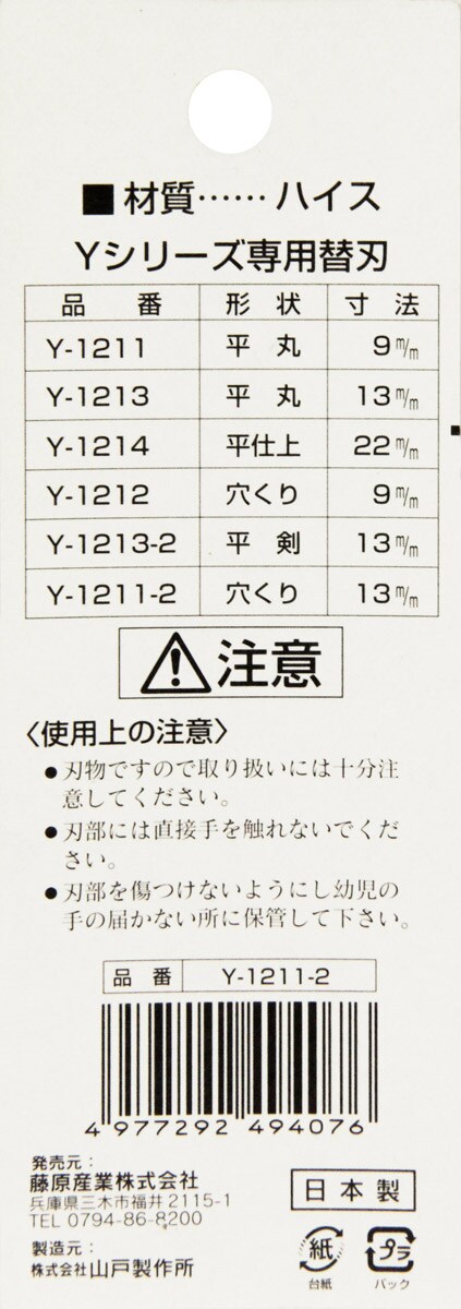 SK11 Y-1211-2用 替刃 穴くり13m/m (1枚)