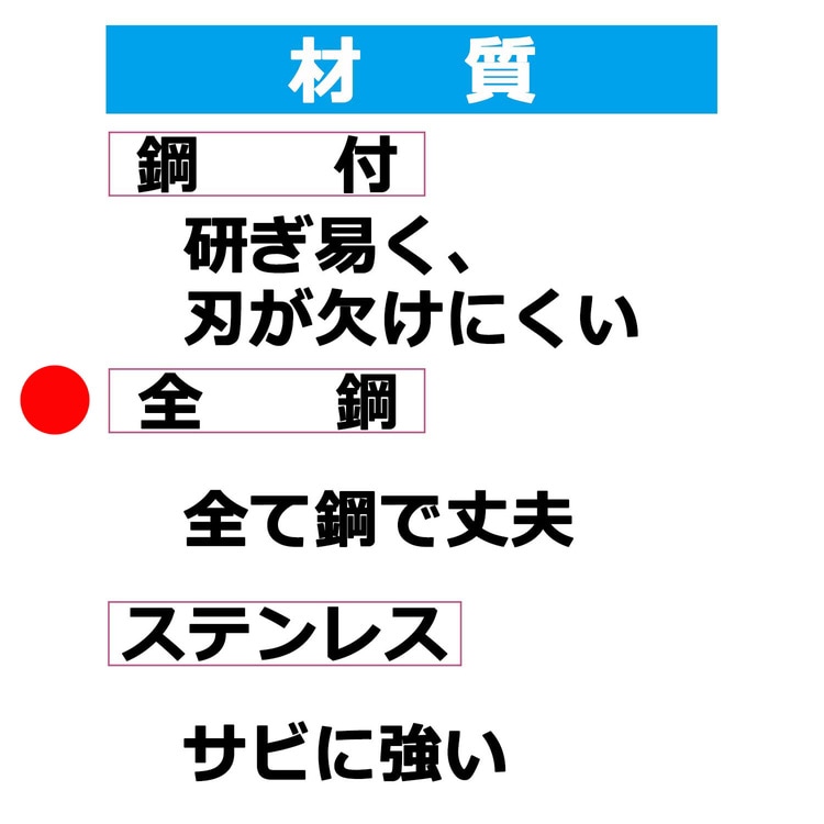 ●全鋼刃で耐久性抜群です。