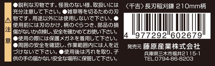 【千吉 長刃鎌 210mm柄 200mmの商品詳細】