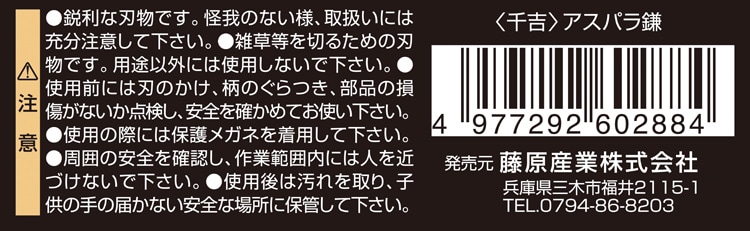 【千吉 アスパラ鎌 100mmの商品詳細】