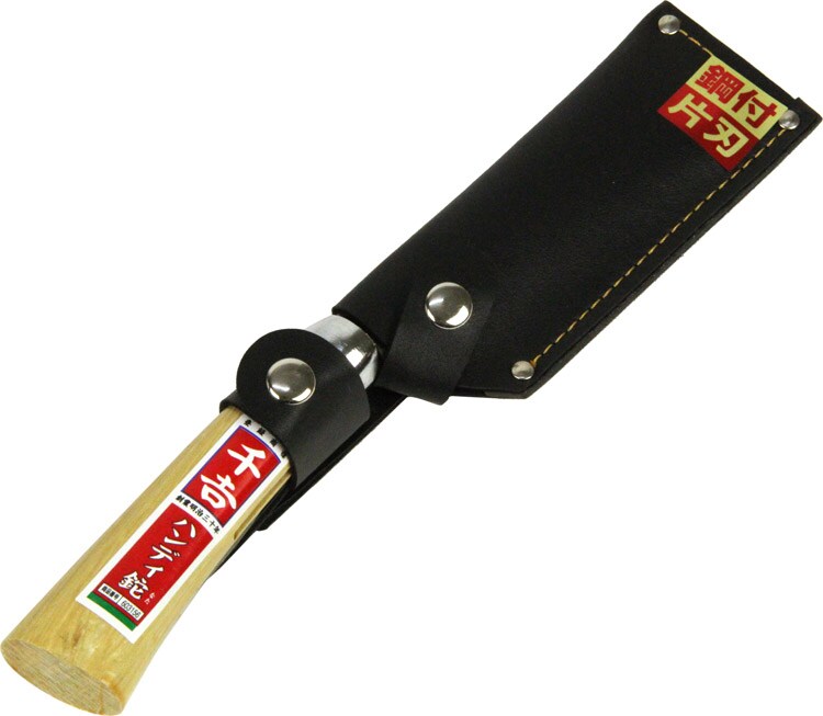 | ・刃部:鋼付 ・刃部:片刃 ・刃長:約110mm ・ベルト通し幅:約50mm ・材質:刃部:刃物鋼。柄部:木。 |