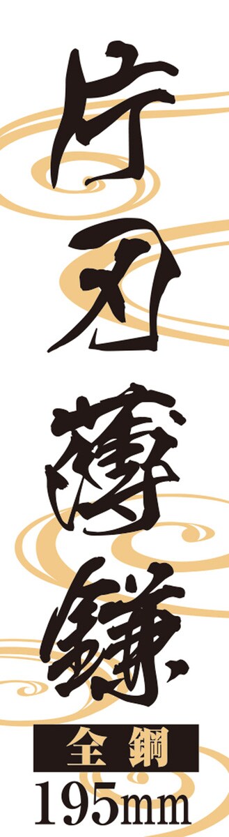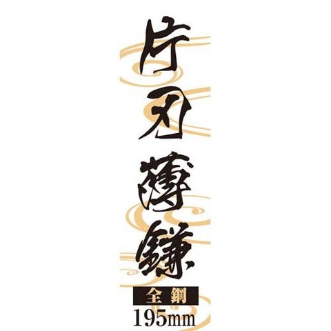 | 刃部:全鋼。片刃。薄刃。刃長:約195mm。(材質)刃部:S50C。柄:椿。 |