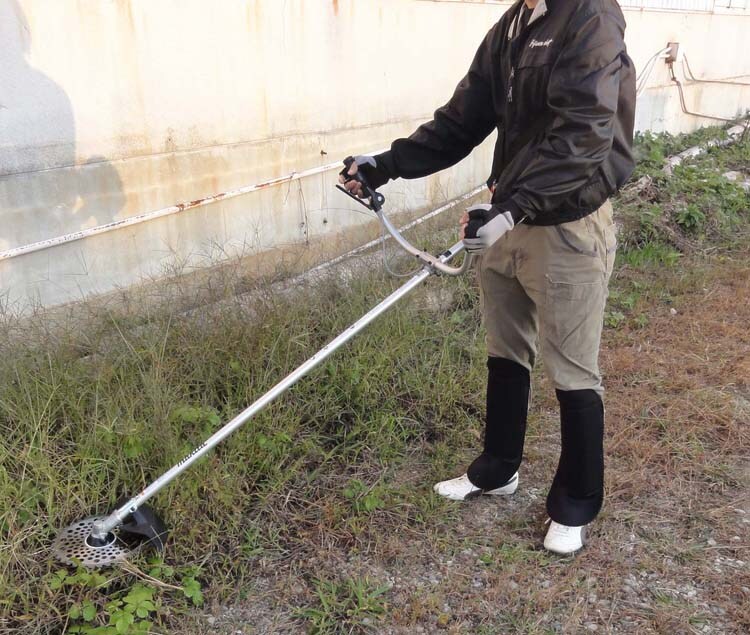 ●刈り払い用すねガード。