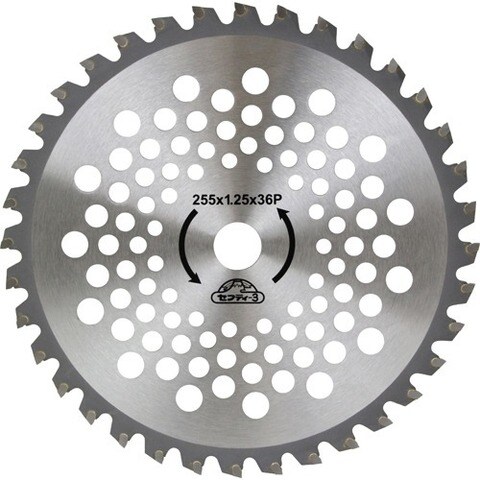 | ・外径:255mm ・刃数:36P ・刃厚:1.25mm ・穴径:25.4mm ・刈払機推奨排気量:25cc以上 ・2枚組 |