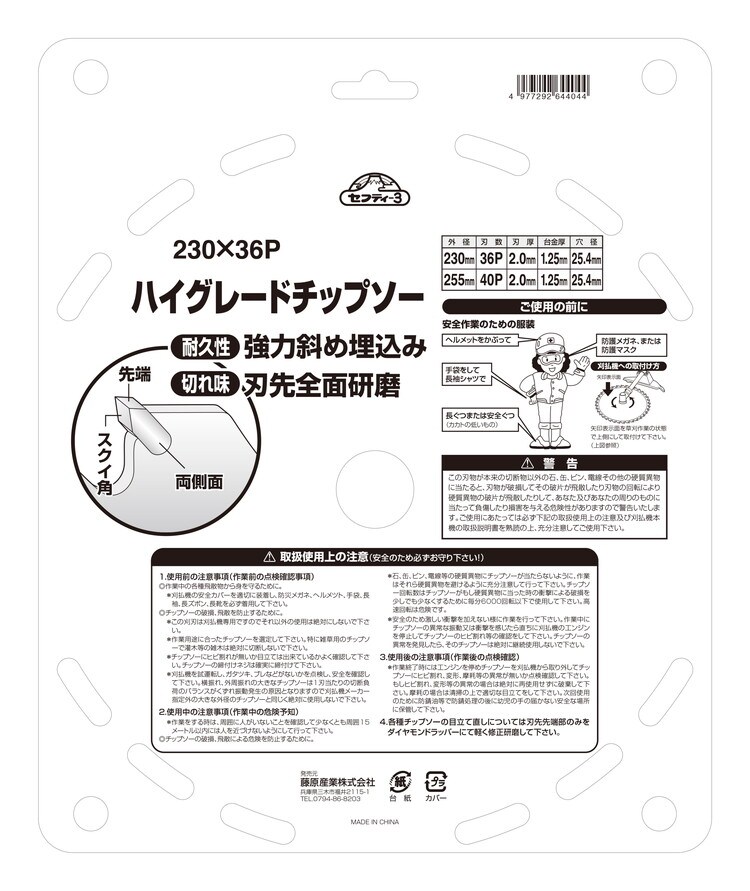 セフティー3 ハイグレードチップソー 230mm*36PJIS (1枚)