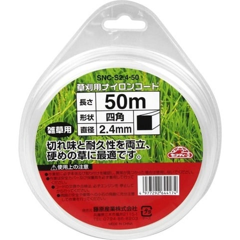 セフティ-3 草刈り用ナイロンコード 四角2.4*50m SNC-S2.4-50 (1コ入)