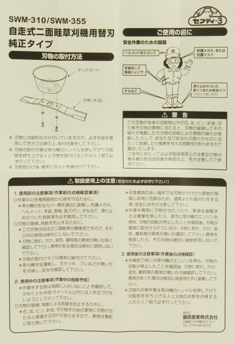 セフティー3 自走式二面畦草刈機用替刃 純正 SWM-355 355mm (1枚)