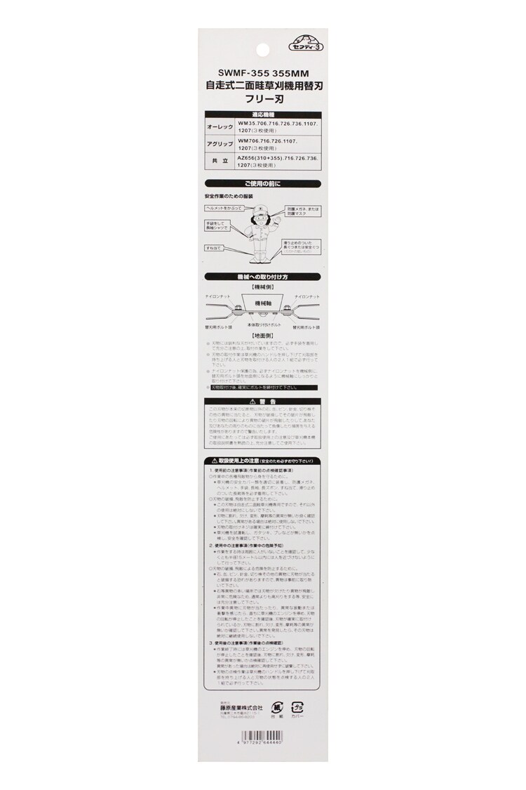 セフティー3 自走式二面畦草刈機用替刃 フリー刃 SWMF-355 355mm (1枚)