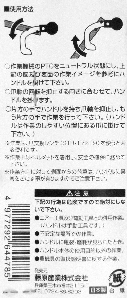 ・作業方向に対して側面からの荷重は、ハンドルに異常をきたす事が有りますのでご注意ください。