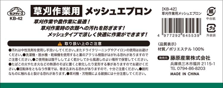 【セフティー3 草刈作業用メッシュエプロン KB-42の商品詳細】