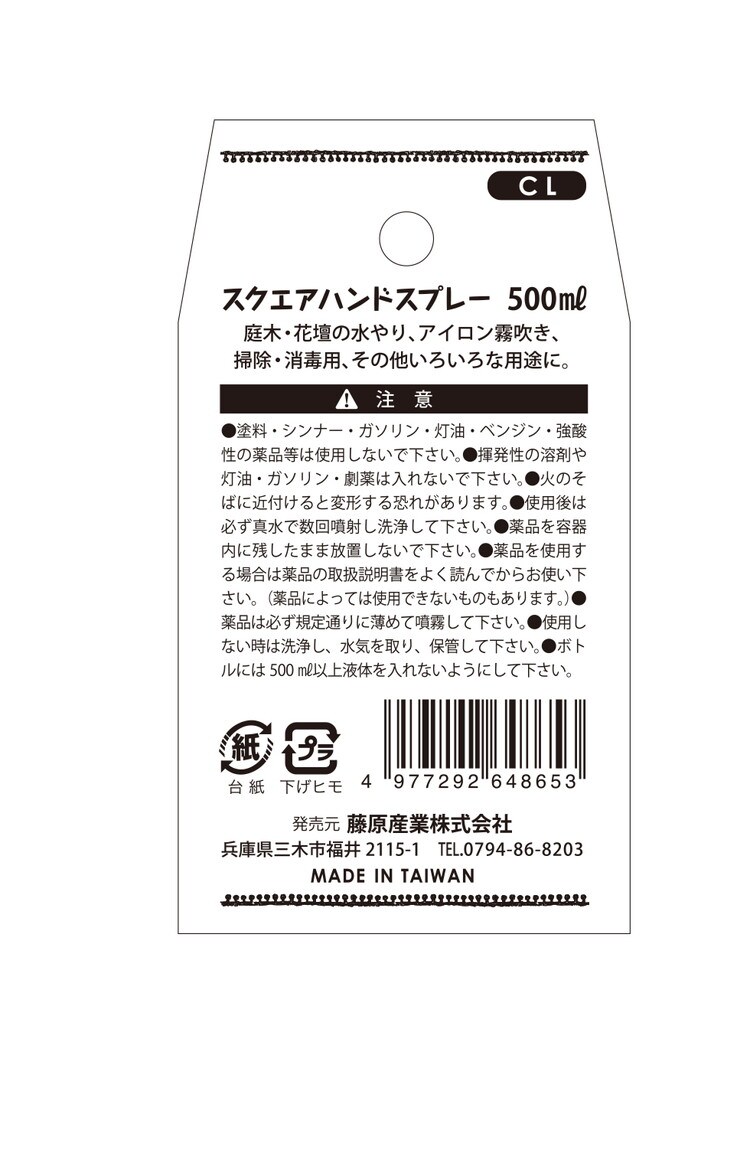 セフティー3 スクエアハンドスプレー CL クリア (500ml)