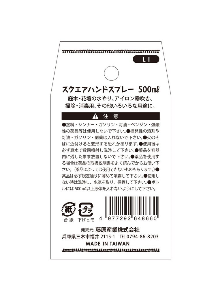 セフティー3 スクエアハンドスプレー LI ライム (500ml)