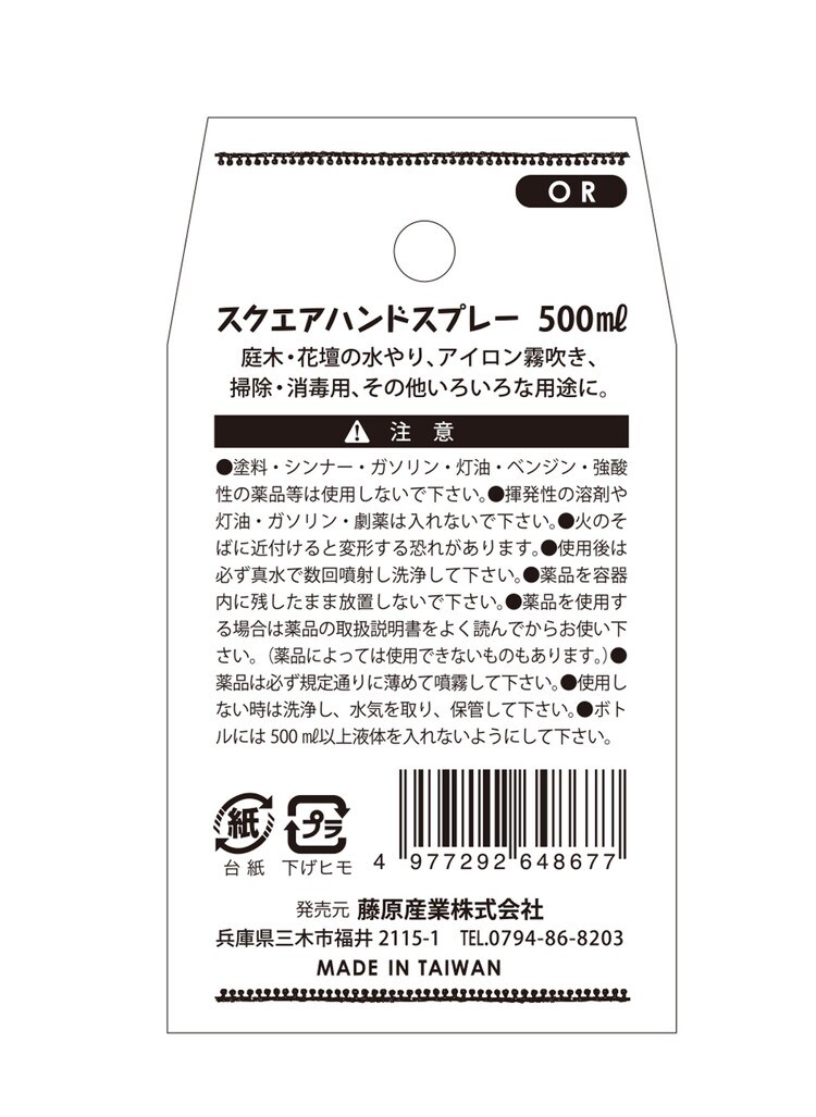 セフティー3 スクエアハンドスプレー OR オレンジ (500ml)