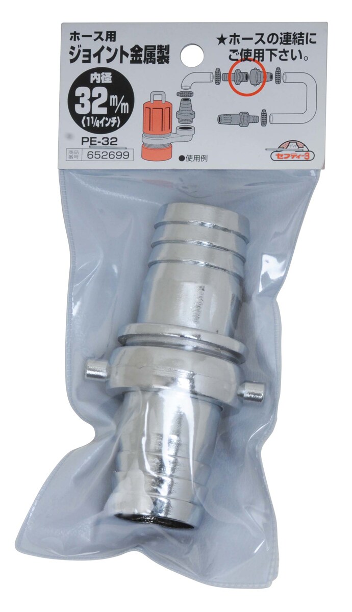セフティー3 ホース用 ジョイント金属製 PE-32 32mm (1個)