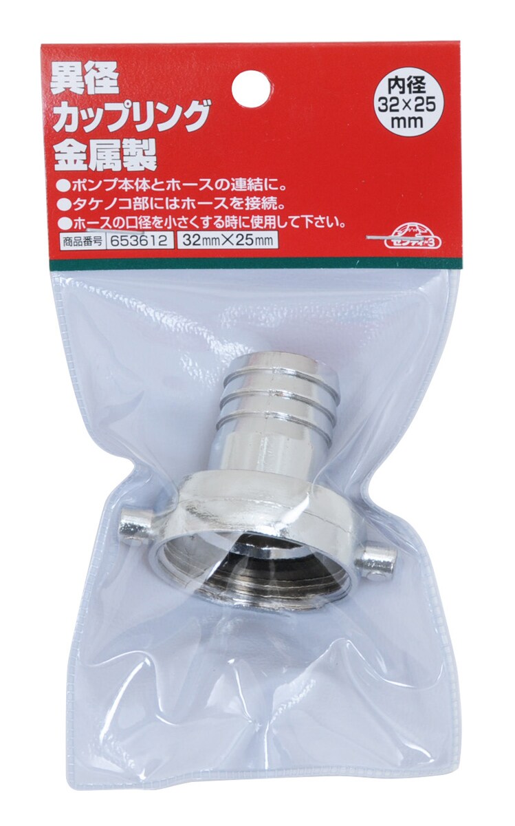 | ・内径25mm(1インチ)ホース用 ・ポンプ取付側:32mm(ネジ径G1・1/4) ・材質:金属製 |